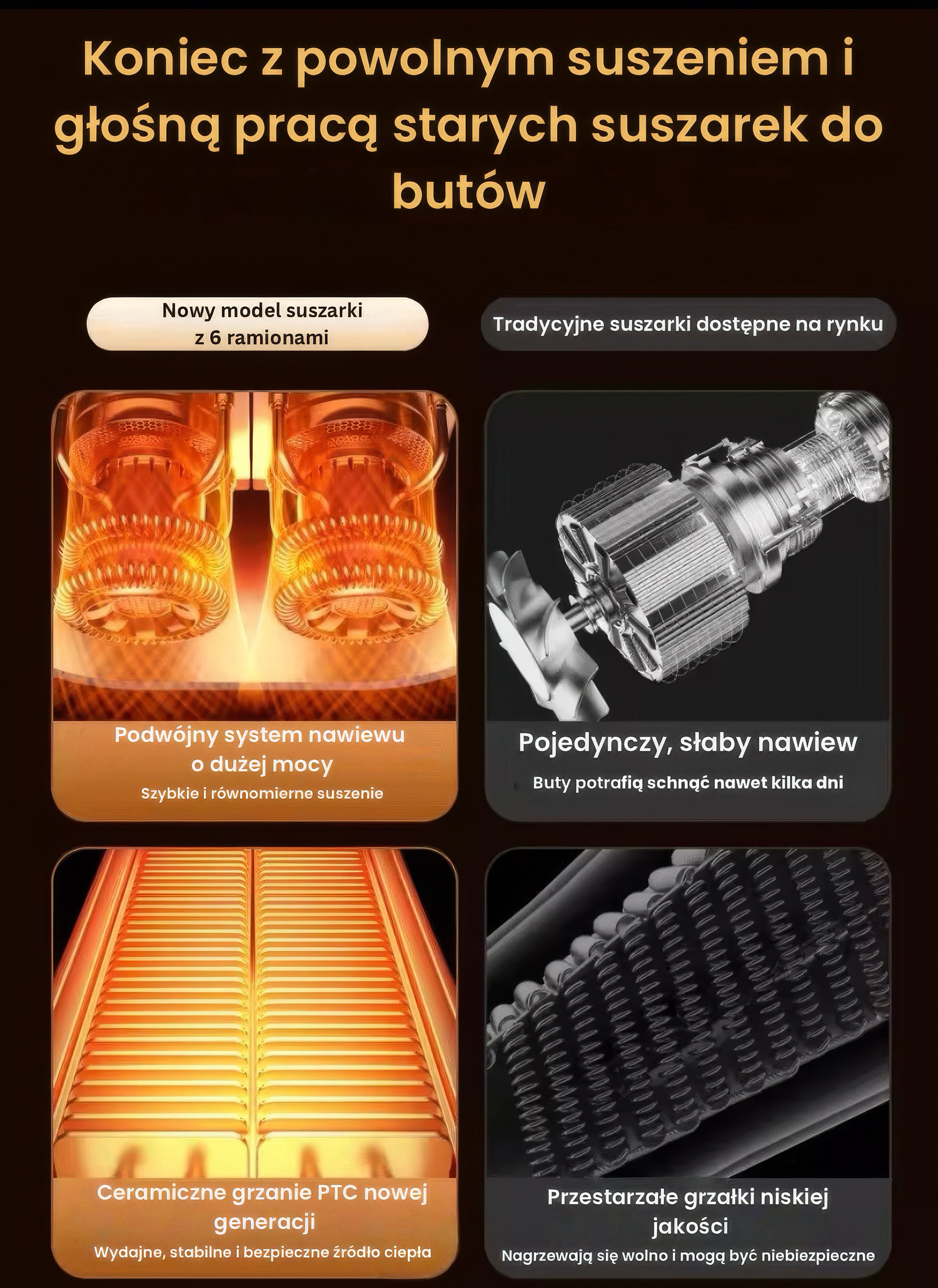 Nie blokuj otworów powietrznych i nie stosuj w butach z elementami bardzo wrażliwymi na ciepło.