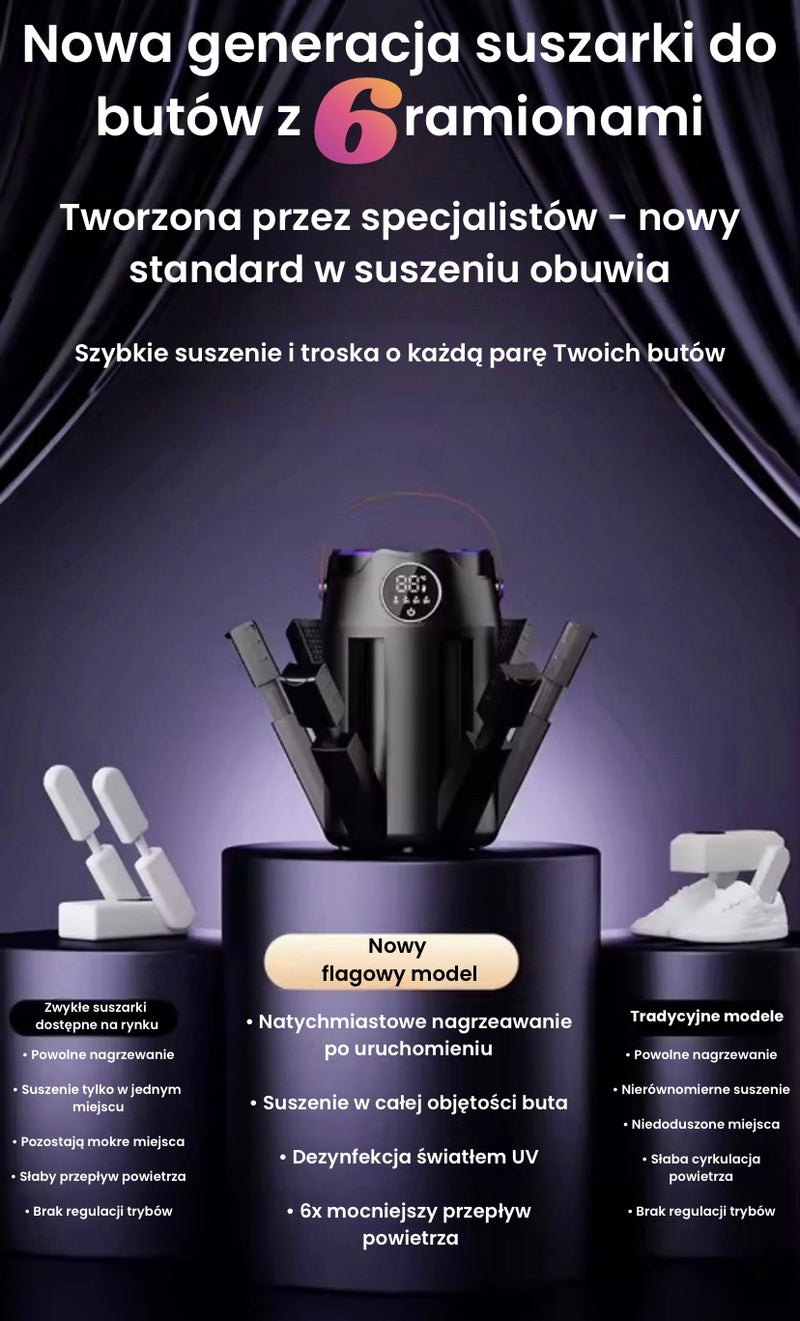 Są wbudowane tryby 3/6/9 godzin, ale możesz wyłączyć urządzenie w dowolnym momencie, kiedy Twoje buty wyschną szybciej.